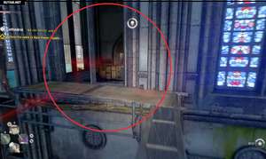 Спрыгните к мешкам для мусора и выйдите через сломанную дверь слева от вас, теперь идите к деревянной доске, и вы окажетесь в верхней части собора, у потолка. Кто-то по имени Курт начнет говорить зловещим тоном; он скажет Эйдену, что не покинет собор живым.