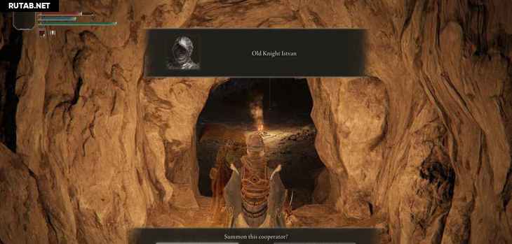 Рядом с группой врагов-полулюдей на берегу вы можете найти вход в Прибрежную пещеру. Пройдите через пещеру, и вы увидите еще несколько полулюдей вдоль пути, затем, прежде чем пройти через отверстие в область с костром, вы можете найти знак вызова для Старый рыцарь Истван.