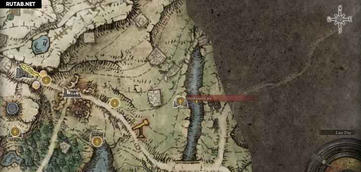 Поговорите с ним, и вы сможете простить его. Затем он говорит вам, что позже он будет доступен в качестве продавца. Вы можете просто переместиться куда-нибудь еще, а затем вернуться в пещеру, и он будет сидеть в комнате и ждать (вам нужно снова пройти через бандитов в предыдущей комнате). Самый интересный предмет, который у него есть, — это Оковы Маргита — уникальный предмет, который можно использовать в битве с боссом Маргит, Ужасное Знаменитое, чтобы временно ошеломить Маргит, нанеся дополнительный урон.