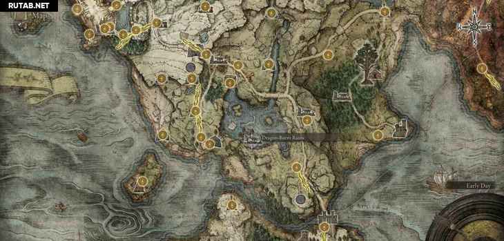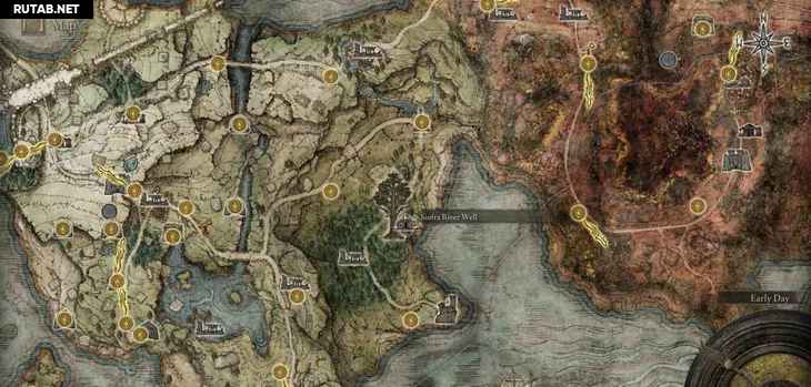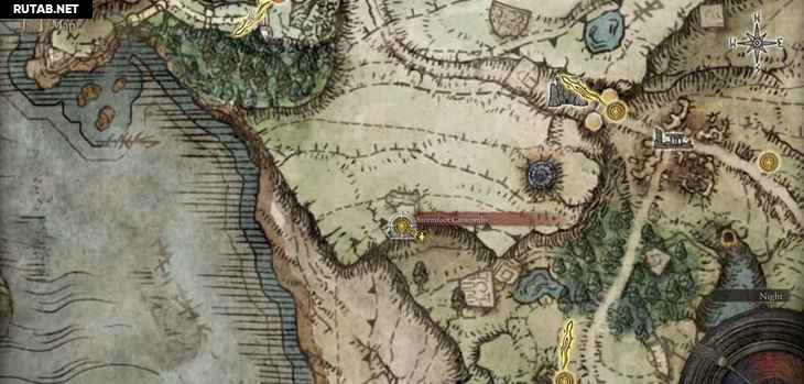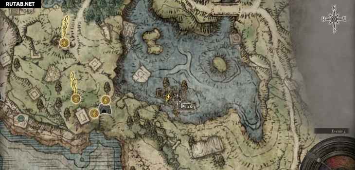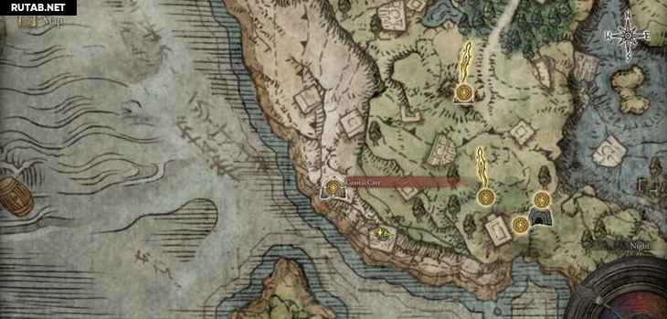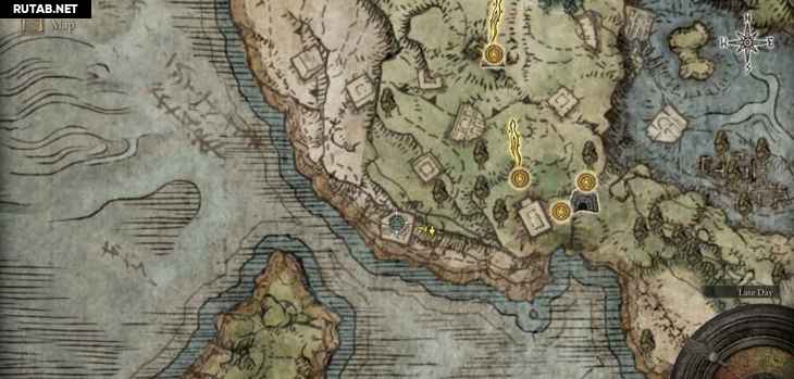 В северной части побережья можно увидеть группу ярких пятен, быстро движущихся по петле. Это невидимый скарабей слёз ходит по кругу. Можно просто стоять на его пути, а затем ударить, когда он приближается к вам. Когда вы успешно убьете его, вы получите Пепел войны.