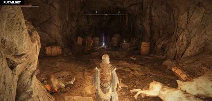 Прямо к северу от Храма Элле вы сможете найти пещеру в стене за солдатом у огня. Внутри вы можете найти несколько волков, спящих вокруг первой области. На нижнем уровне прямо под тем местом, где вы входите, вы можете подобрать Трес. горшок с тела.