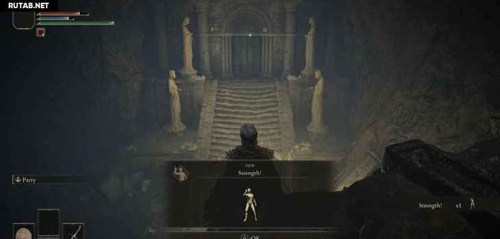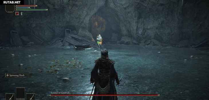 Если вы посмотрите вниз направо, вы увидите область внизу с запиской на земле, в которой говорится, что внизу Пещера знаний. Это фактическая область обучения, которую вам не нужно проходить для прогресса. В этой области вы познакомитесь с базовой боевой механикой и некоторыми игровыми системами, а в конце у вас будет битва с боссом Солдат Годрика.