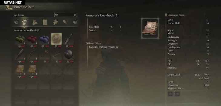 Главные вещи, которые вы должны проверить у продавца, это Треснувшие горшки x3, Набор мастера, три Справочника и, возможно, Факел. Покупка набора мастера позволяет вам создавать предметы, которые изготавливаются с использованием предметов, которые вы узнаете из различных справочников. Метательные предметы изготавливаются с использованием треснувших горшков. При этом вы можете создать столько предметов, сколько у вас есть треснувших горшков, а затем получить горшки обратно после их использования, чтобы вы могли создавать больше предметов.