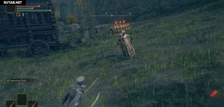 Уникально выглядящий враг с копьём и большим щитом — самый опасный в этом районе. Они могут делать такие вещи, как наносить встречные удары, поэтому старайтесь бить их после атак или увернуться для удара в спину. Использование Праха волков-одиночек, который вы должны были получить непосредственно перед этим, является отличной идеей для зачистки этой области, так как волки будут постоянно отвлекать большинство врагов здесь.