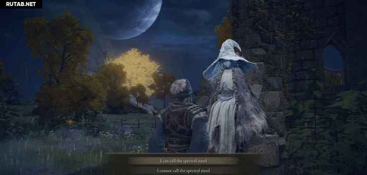 Теперь вы должны открыть свою карту и вернуться в Храм Элле. На соседней стене будет сидеть таинственная фигура. Она представится как Ренна, и вы должны ответить на ее вопрос «Я могу призвать призрачного скакуна», за что она даст вам Колокольчик призыва духов и Прах волков-одиночек.