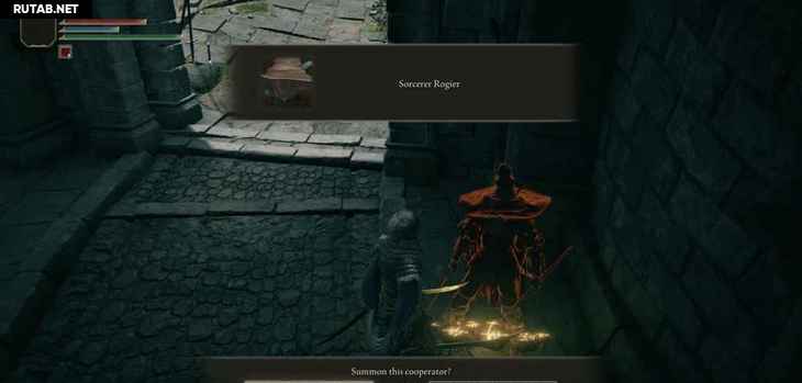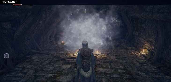 Это последнее место благодати перед тем, как вы перейдете к первому боссу, поэтому не забудьте подготовиться, прежде чем выходить из туннеля. Слева также есть статуя призыва, а справа знак вызова NPC, где вы можете вызвать Чародей Рожер.