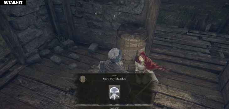 В хижине войдите внутрь и поговорите с женщиной в красном, которая сидит на полу. Поговорите с ней три раза, и вы получите эмоцию Сесть боком, а затем Прах призрачной медузы.