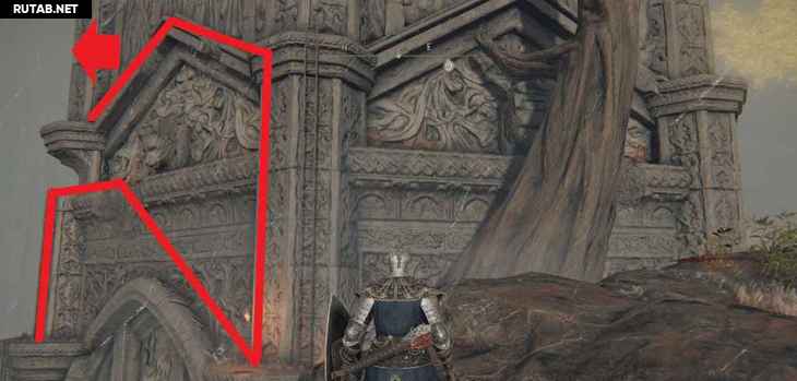 Продолжайте подниматься на вершину башни, где вы можете активировать Великую руну в середине двух пальцев.