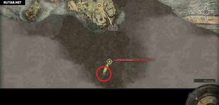 - Локация ↑ – Плачущий полуостров: Бастион замка Морн ↑ – прямо к югу от места благодати по тропе.