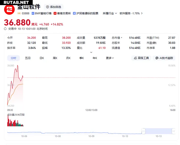 Акции компании Kingsoft взлетели более чем на 14%, достигнув в ходе торгов пика в +18%.