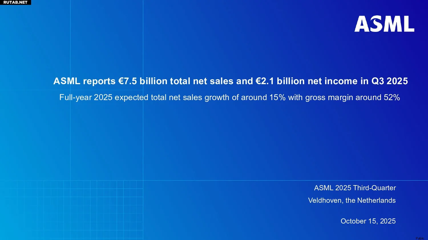 ASML отчиталась о финансовых результатах за третий квартал 2025 года