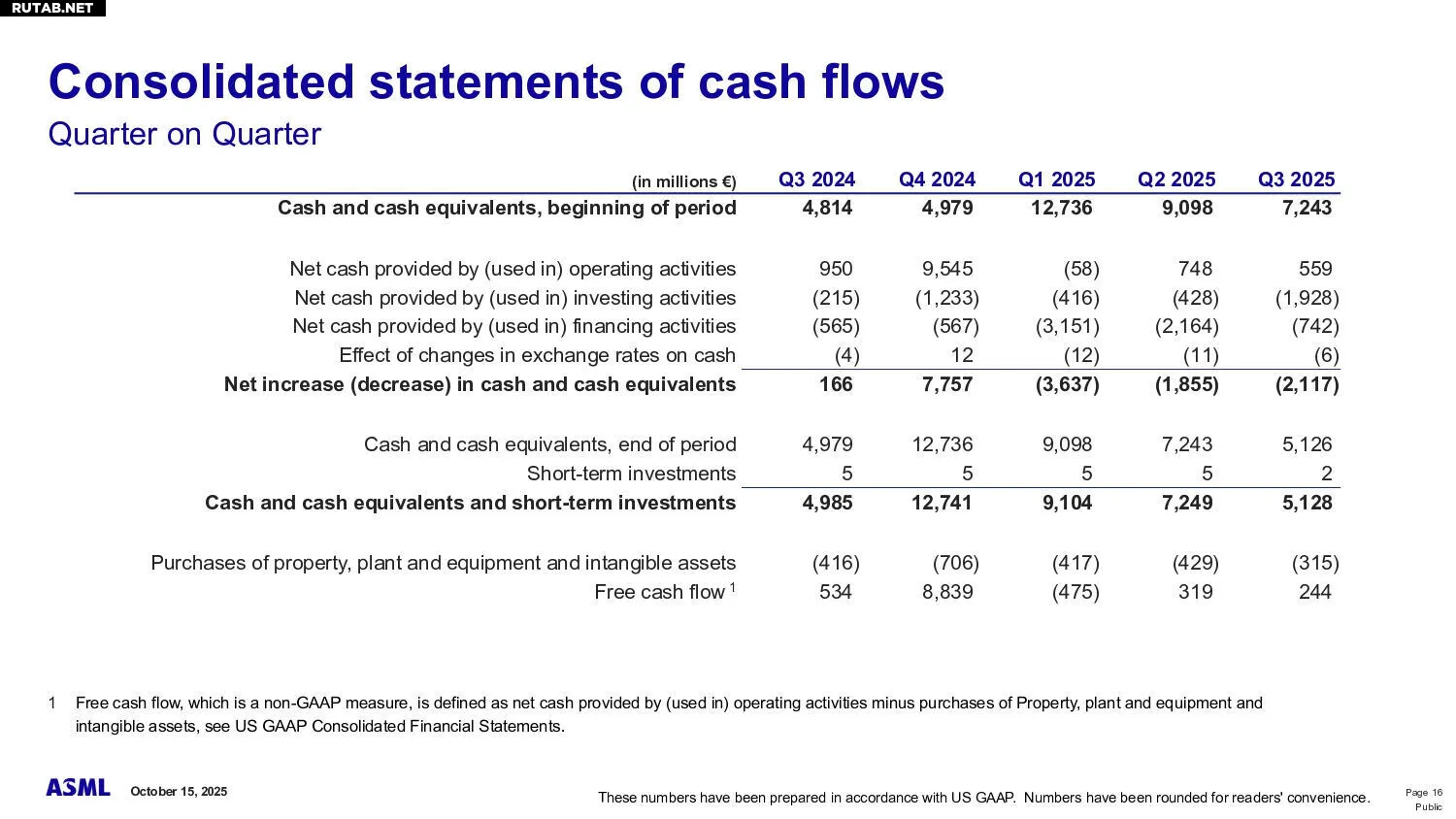 ASML объявила о промежуточном дивиденде в размере 1,60 евро на одну обыкновенную акцию, которые будут выплачены 6 ноября 2025 года. В третьем квартале компания выкупила акций на сумму около 148 млн евро в рамках текущей программы обратного выкупа акций на 2022-2025 годы.