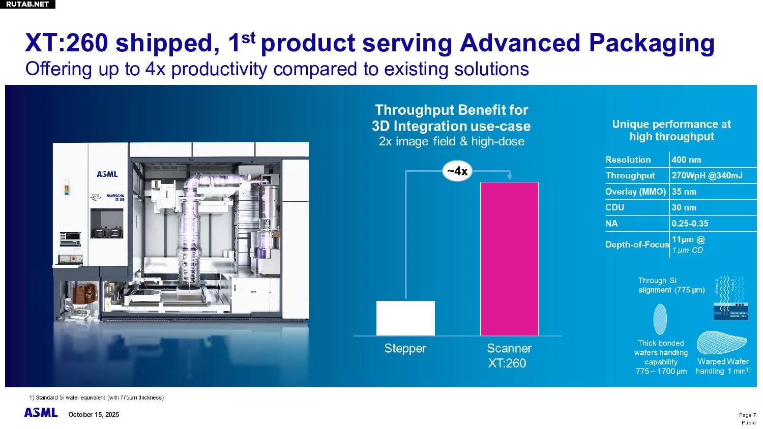 Фуке также сообщил о поставке первого продукта ASML для передовой упаковки — сканера TWINSCAN XT:260, который предлагает до 4-кратного повышения производительности по сравнению с существующими решениями.