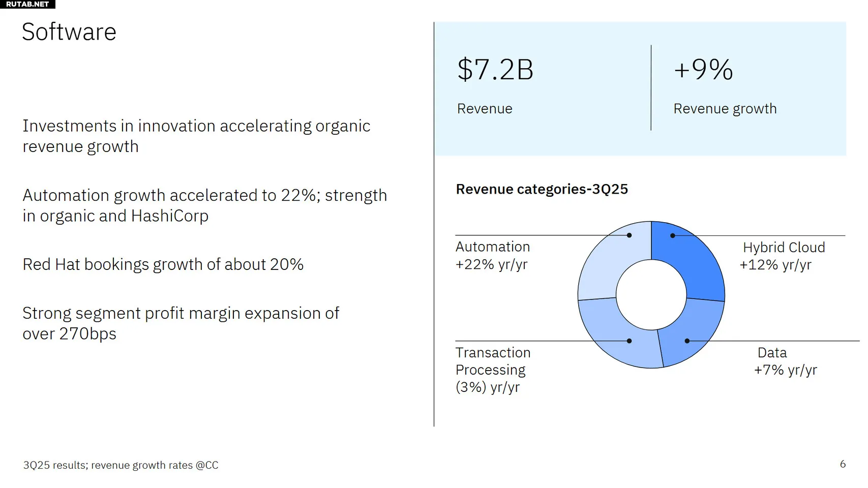 - Программное обеспечение: выручка 7,2 млрд долларов, рост 10%