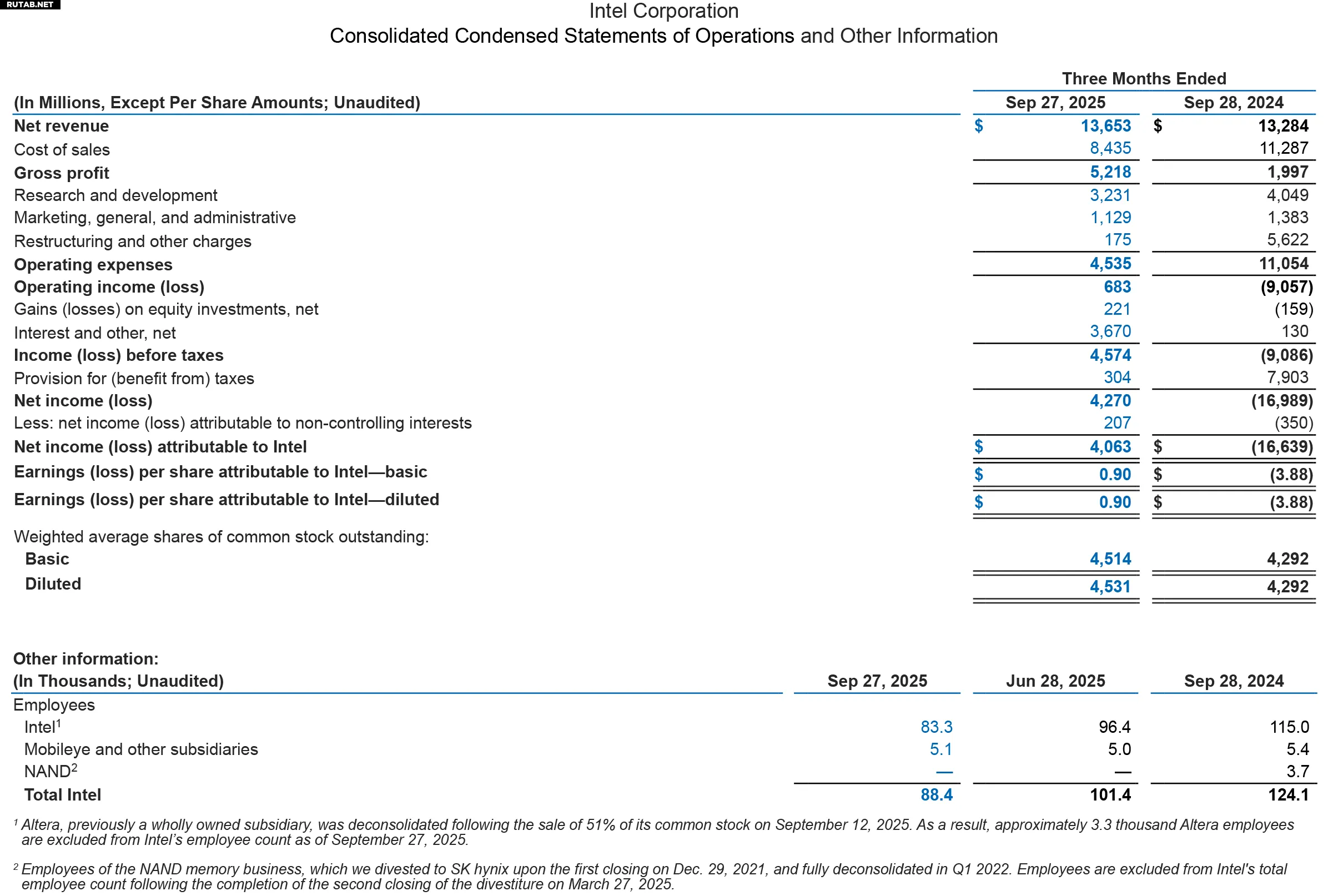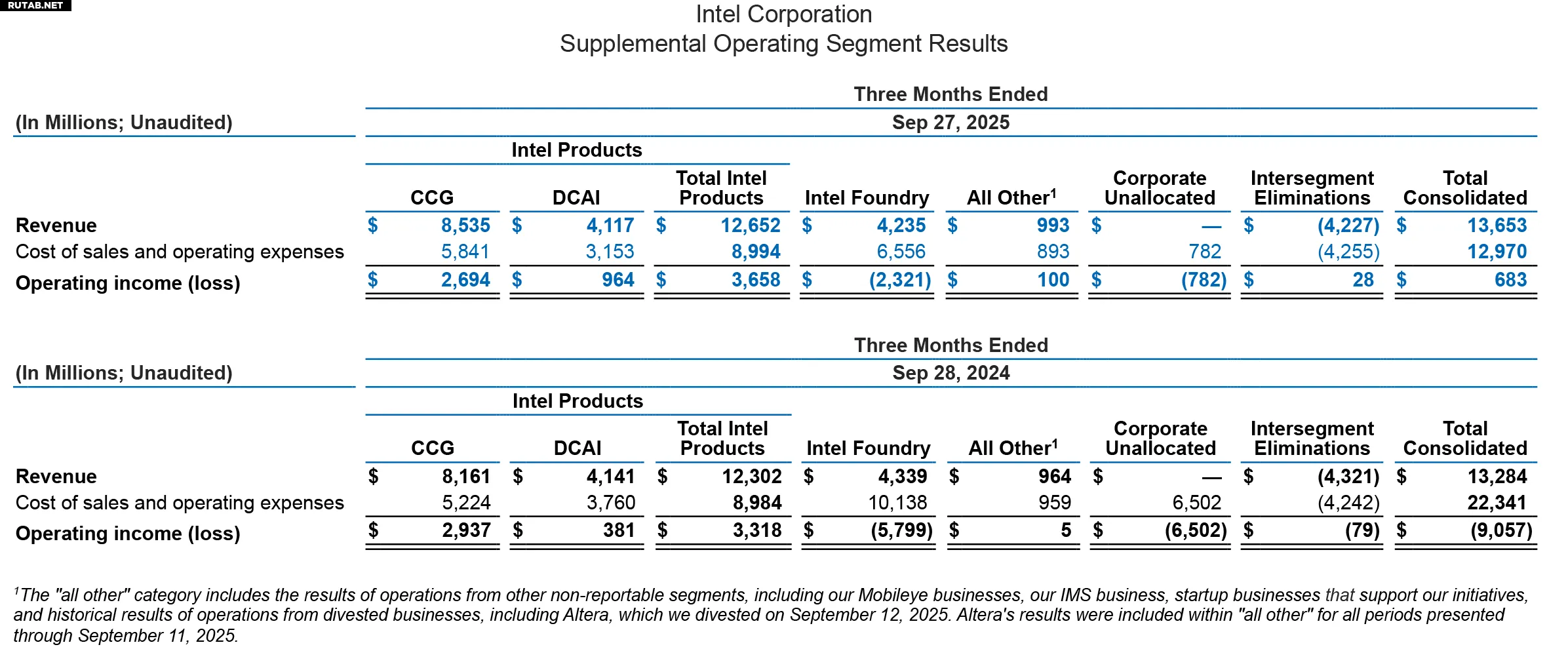 Финансовый директор Intel Дэвид Зинснер заявил: «В этом квартале мы предприняли значимые шаги для укрепления нашего баланса, включая ускоренное финансирование от правительства США и инвестиции от Nvidia и SoftBank Group».