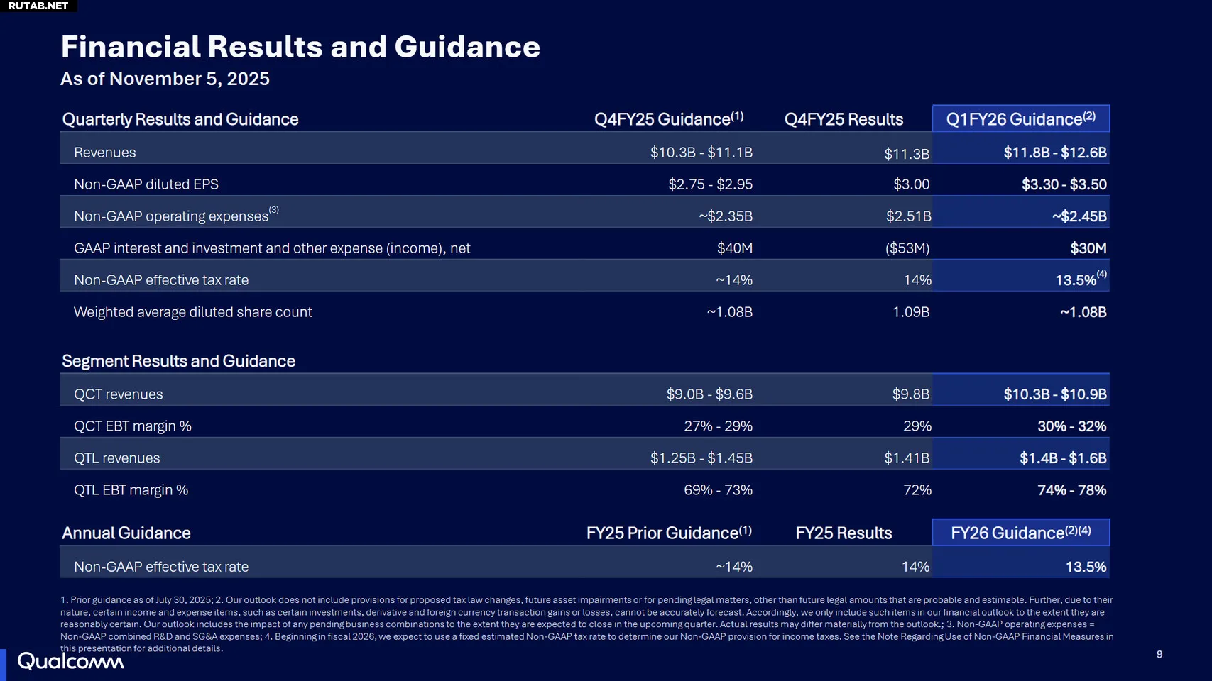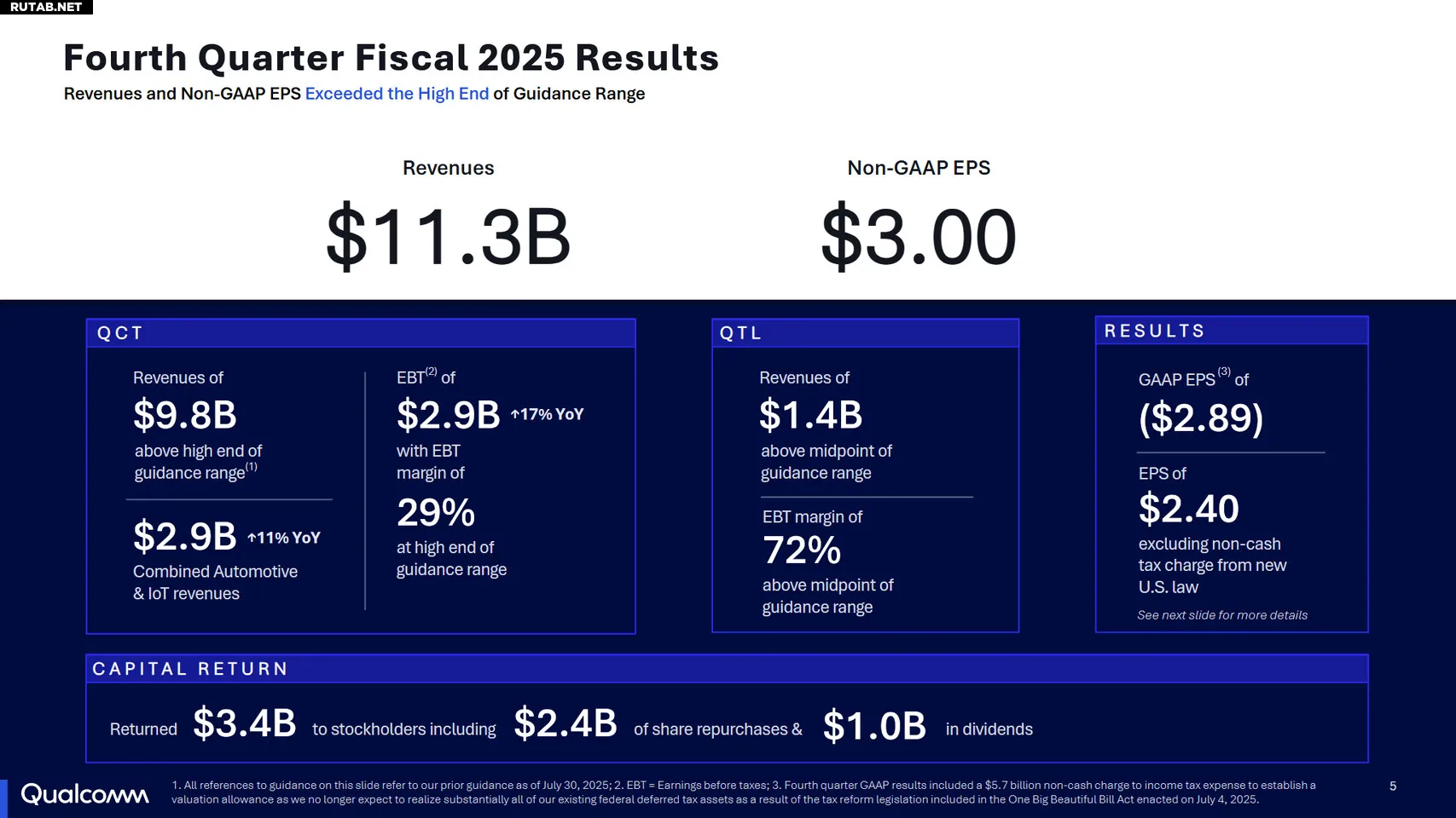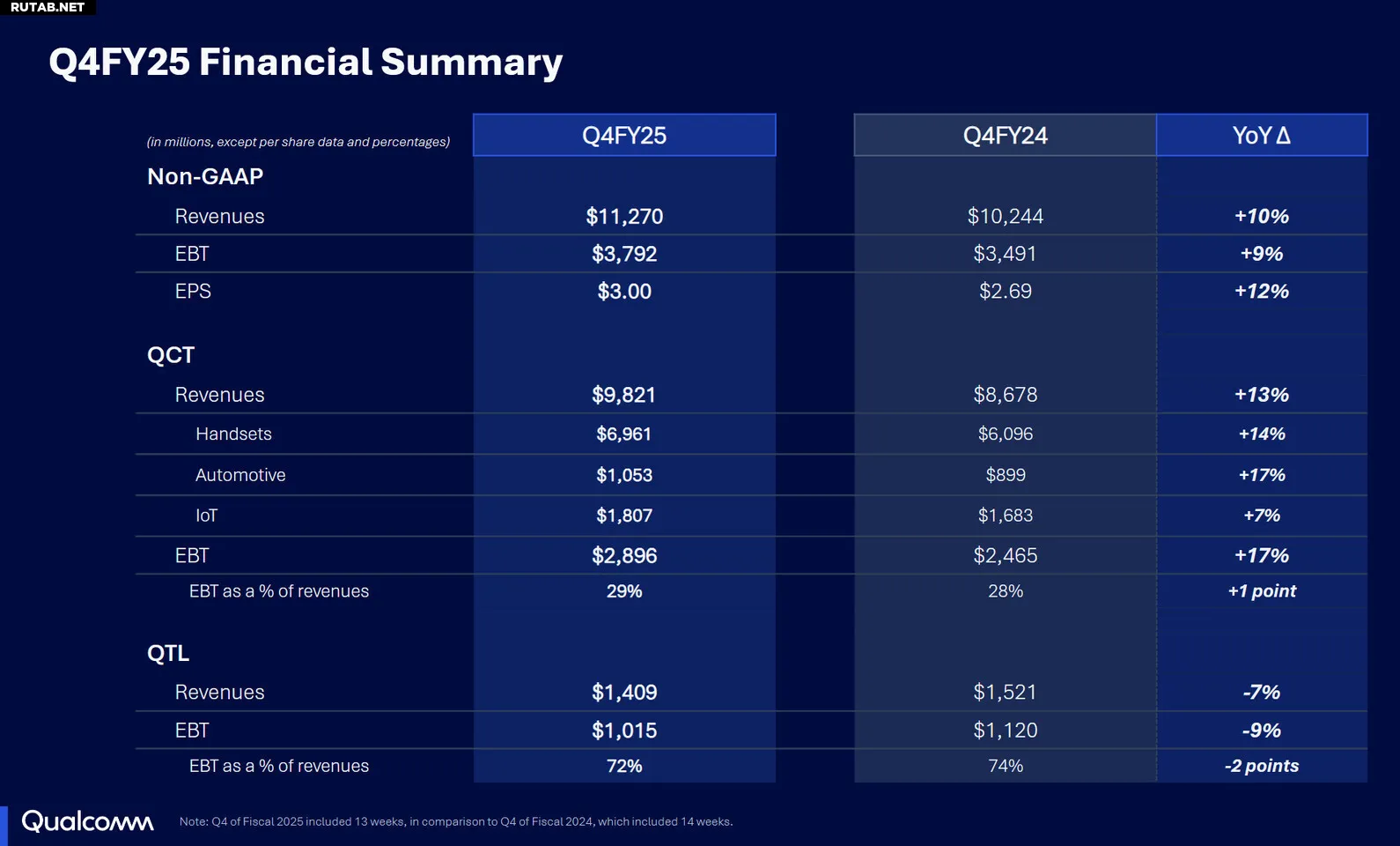 Компания Qualcomm Incorporated (NASDAQ: QCOM) объявила финансовые результаты за четвёртый квартал и за весь 2025 финансовый год, завершившийся 28 сентября 2025 года.