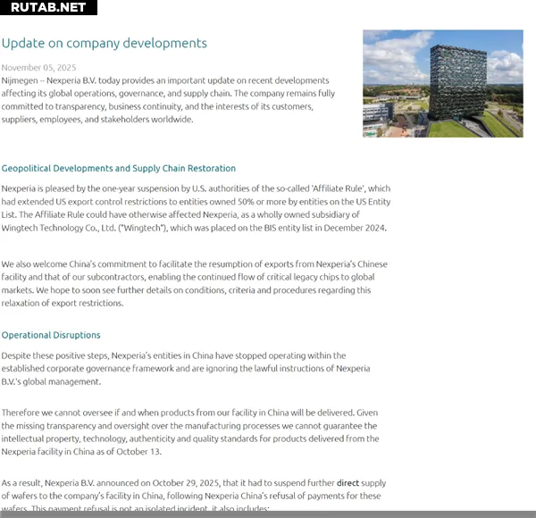 Компания также опровергла слухи о возвращении Чжан Сюэчжэна на пост генерального директора. В Nexperia подтвердили, что согласно решению корпоративного суда от 7 октября 2025 года, Чжан Сюэчжэн был отстранен от обязанностей директора и более не занимает должность CEO компании.