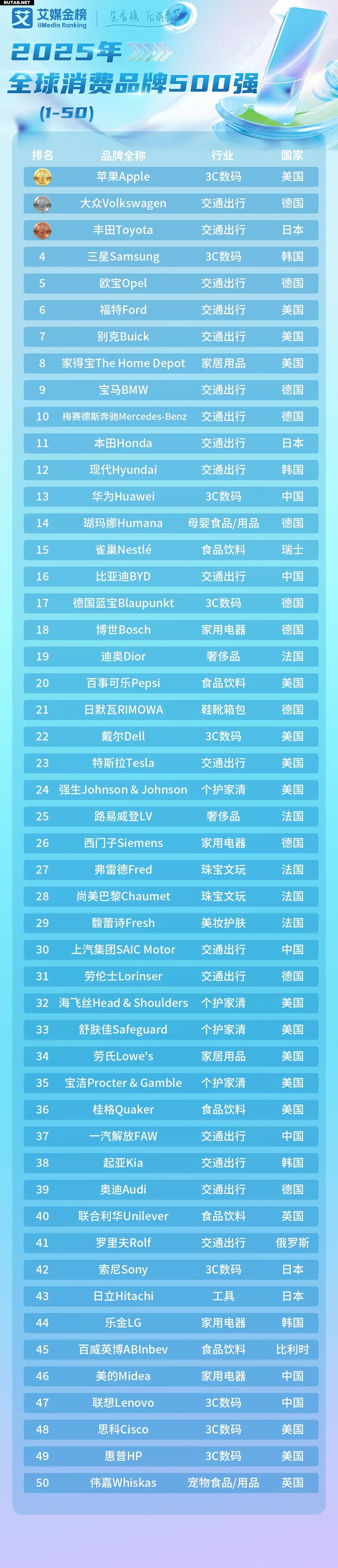 Сегодня был опубликован рейтинг «500 сильнейших потребительских брендов мира 2025 года» (2025 Global Top 500 Consumer Brands), составленный аналитической компанией iiMedia Research. Первое место в нём уверенно занимает Apple.