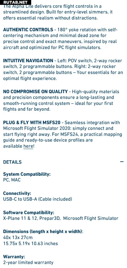 - Такое же высокое качество, как у Alpha Flight Controls, но с меньшей сложностью и реализмом, конкурирующим с продуктами высшего класса