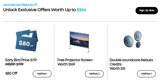 Nebula P1 позиционируется как более компактная и доступная альтернатива модели Nebula X1. Стандартная цена проектора составляет 799 долларов (~64000 руб.), но по ограниченному предложению его можно приобрести за 719 долларов (~57500 руб.) в официальном магазине Anker и на Amazon. В комплект также входит бесплатный 100-дюймовый экран для уличного использования со стойкой, стоимостью 169 долларов (~13500 руб.) — отличный набор для первых покупателей.