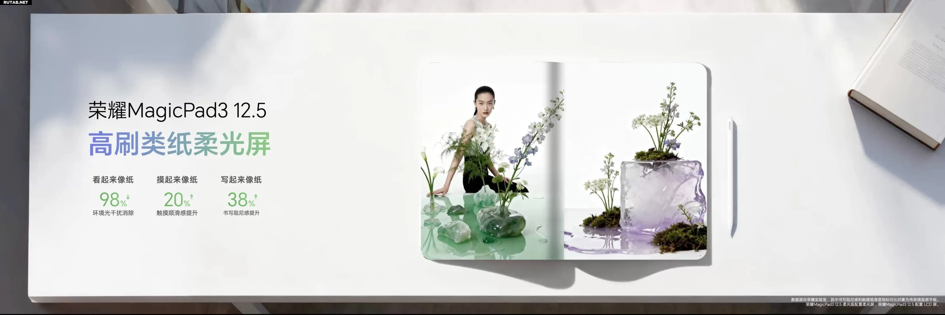 Основные характеристики включают 12,5-дюймовый ЖК-экран с разрешением 3048×2032 пикселей, пиковой яркостью 1000 нит, поддержкой частоты обновления 165 Гц и частоты дискретизации касаний 270 Гц. Экран поддерживает отображение 1,07 миллиарда цветов, аппаратное затемнение DC, несколько технологий защиты зрения и сертификаты HDR VIVID и IMAX Enhanced.