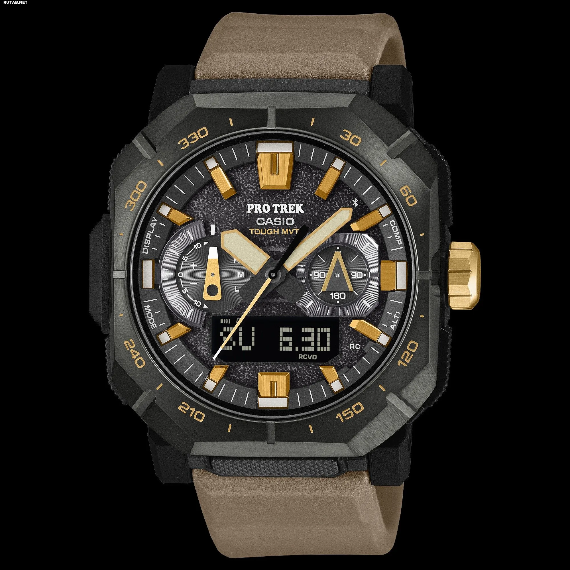 С помощью приложения CASIO WATCHES пользователи могут синхронизировать часы через Bluetooth для автоматической коррекции высоты, ведения журнала «Время и Место» и отслеживания маршрута. Индикатор местоположения показывает направление и расстояние до сохранённых точек. Полностью автоматическая двойная светодиодная подсветка Super Illuminator освещает как аналоговый, так и цифровой дисплей для удобства считывания информации в темноте.