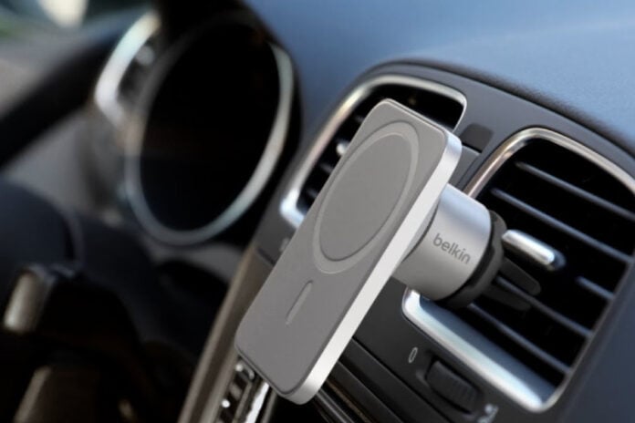 Для автомобиля удобно использовать магнитное крепление Belkin MagSafe Car Vent Mount PRO. Оно надежно фиксирует смартфон на дефлекторе и позволяет вращать его между портретной и альбомной ориентацией.
