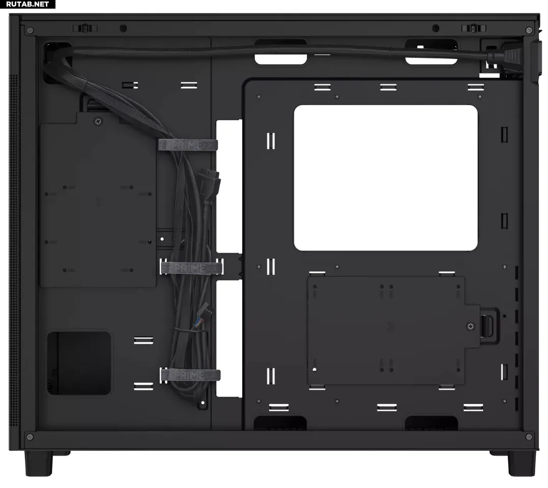 Корпус ASUS Prime AP303 эффективно использует каждый квадратный сантиметр, предоставляя место для блоков питания ATX длиной до 180 мм и видеокарт длиной до 360 мм. Кронштейн для видеокарты рассчитан на поддержку массивных моделей GeForce RTX 50 Series длиной от 310 до 360 мм, включая такие тяжелые карты, как ROG Astral GeForce RTX 5090. Это обеспечивает долговременную стабильность работы даже для видеокарт с крупными радиаторами для премиального теплоотвода. Кроме того, Prime AP303 обеспечивает стабильное питание через сертифицированный кабель, который подает ток 15 ампер на передне расположенный блок питания. Для удобного управления кабелями в AP303 предусмотрен отсек шириной 34 мм за материнской платой.