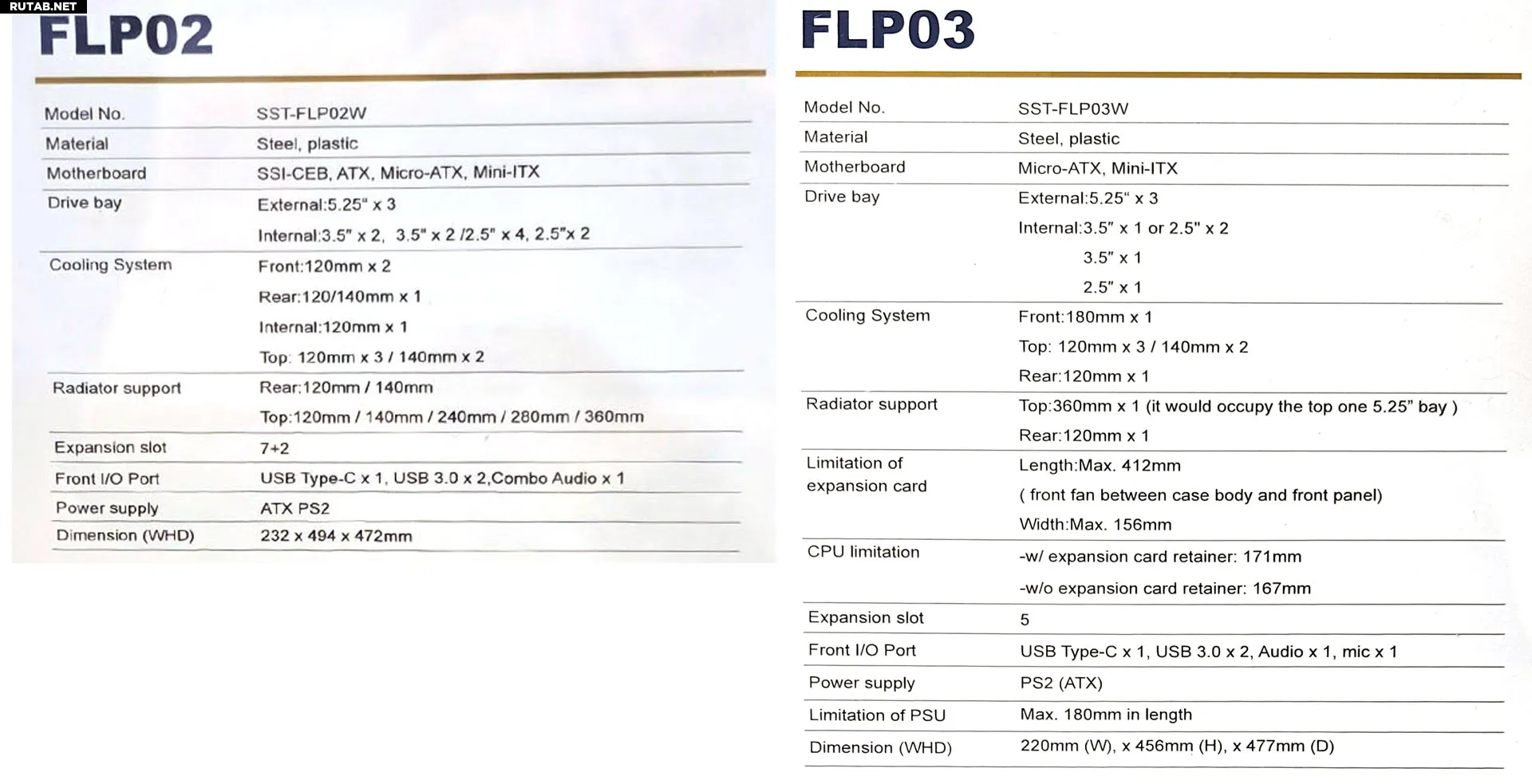 Разница в размерах не столь существенна. Габариты нового FLP03 составляют 220 (Ш) x 456 (В) x 477 (Г) мм, и заметное отличие наблюдается в основном по высоте. Он не сэкономит много места на или под столом. Однако из-за уменьшенных размеров FLP03 не поддерживает материнские платы форматов SSI-CEB или ATX, как это делает FLP02. Кроме того, у новой модели меньше отсеков для оптических приводов, меньше слотов расширения и изменена схема охлаждения.