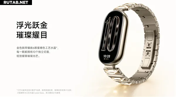 На презентации серии Xiaomi 17 в сентябре также был представлен Xiaomi Band 10 Yaoying Gold Special Edition с золотым ремешком, инкрустированным 6 кристаллами медового цвета, каждый из которых имеет 10 независимых граней, по цене 499 юаней.