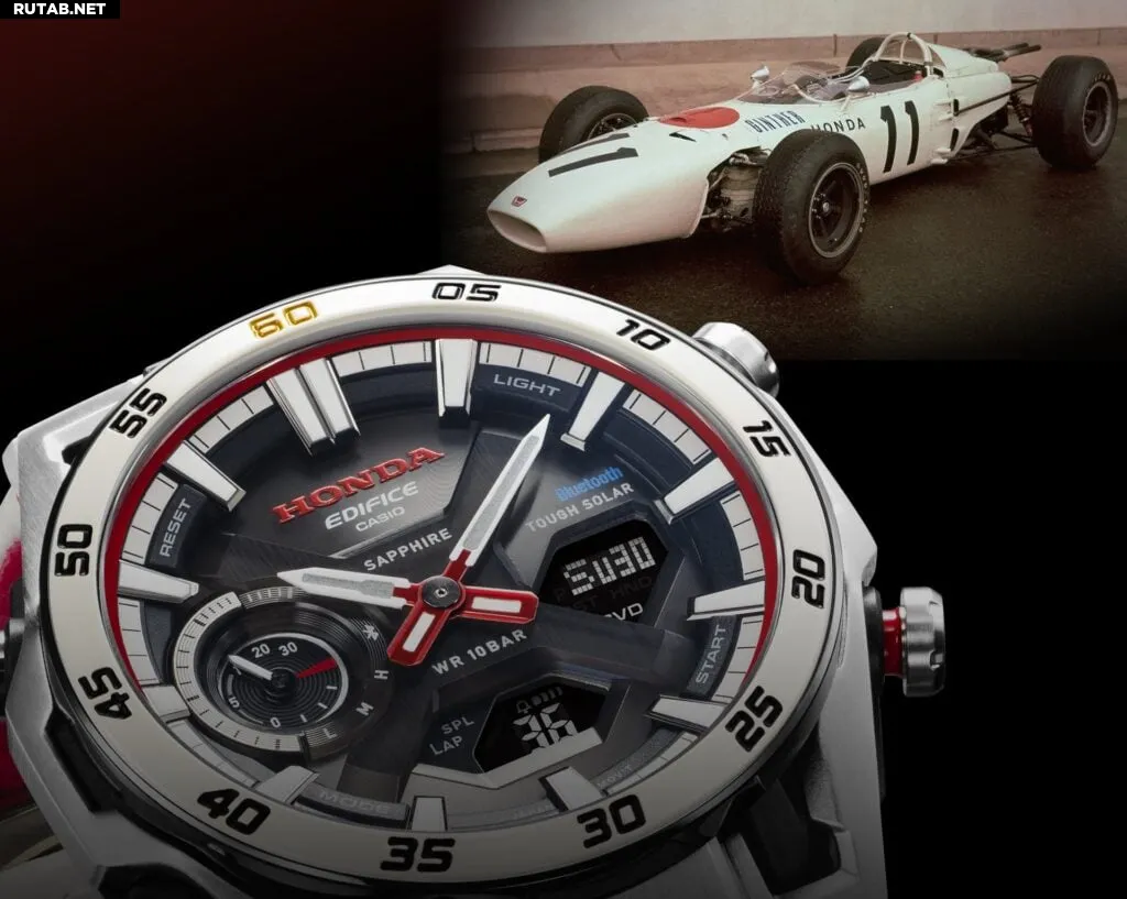 Casio представила специальную версию часов Edifice в честь 60-летия первой победы Honda в Формуле-1. Новая модель ECB-2300HR-1AJR посвящена исторической победе на Гран-при Мексики 1965 года, а её дизайн вдохновлён болидом RA272, который принёс Honda первый флажок в «королевских гонках».