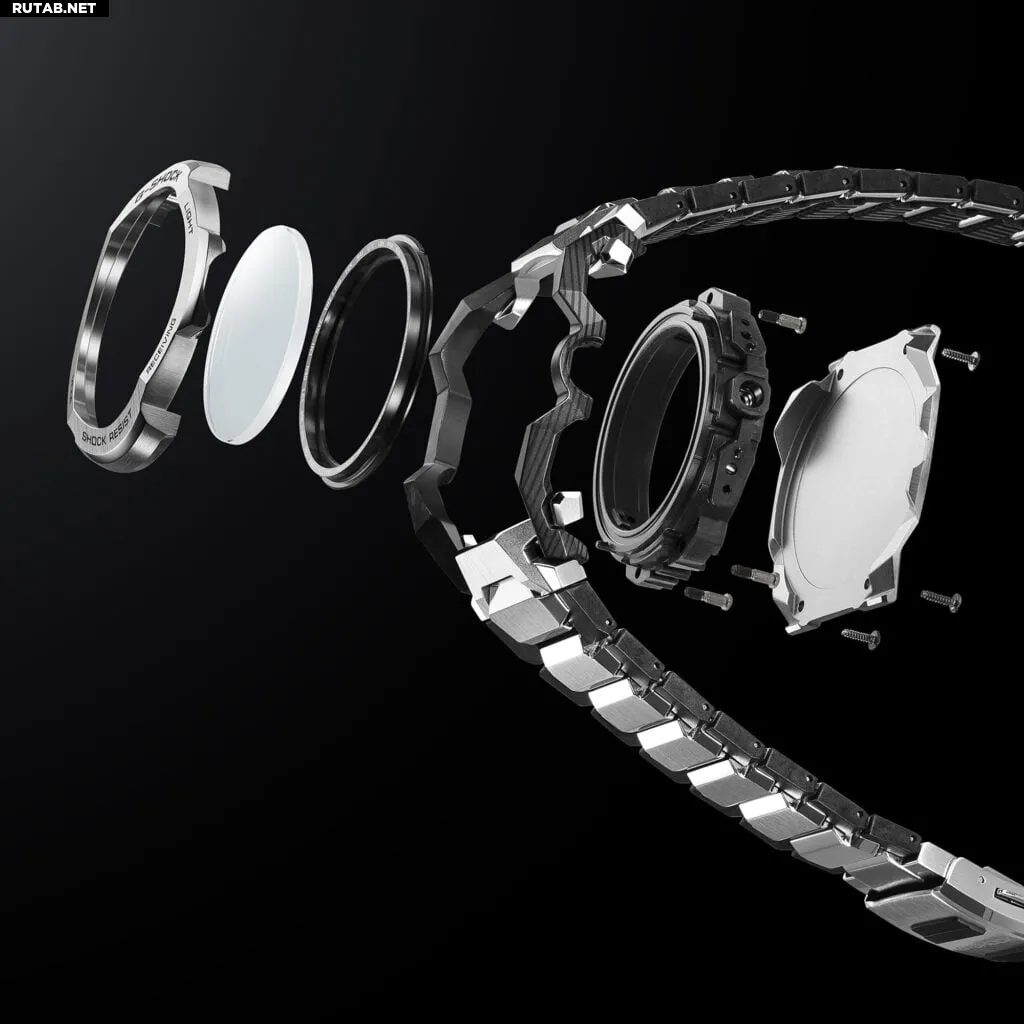 Каркас часов изготовлен из ламинированных листов углеродного и стекловолокна, создавая слоистый узор, который виден сбоку. Безель из нержавеющей стали использует двухслойный дизайн с отдельной матовой и зеркальной обработкой, что придаёт часам полированный и фактурный вид. Браслет имеет слоистую композитную структуру из нержавеющей стали и смолы, армированной углеродным волокном, обеспечивая прочную и лёгкую посадку.