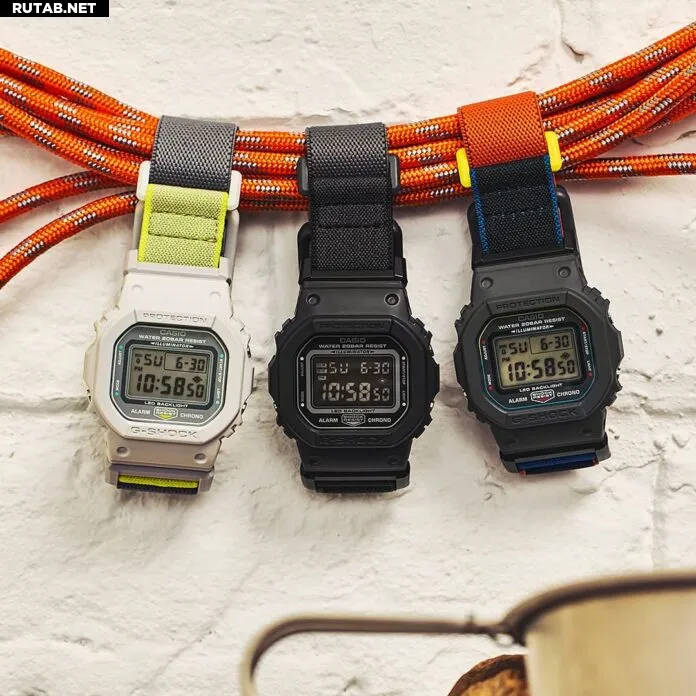Что это: Свежий взгляд на классические квадратные часы Casio DW-5600. Вместо ремешка из смолы здесь эластичный нейлоновый браслет с магнитной застежкой Fidlock (простая система застегивания одной рукой). Доступен в черном, серо-желтом или сине-оранжевом цветовых вариантах.