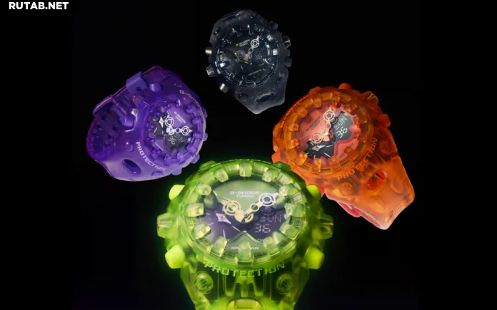 Что это: Новая версия «Transparent Pack» для восьмиугольного G-Shock GA-V01. Она представлена в четырех прозрачных цветах (неоново-зеленый, оранжевый, фиолетовый, серый) и сохраняет характерный многослойный циферблат модели.