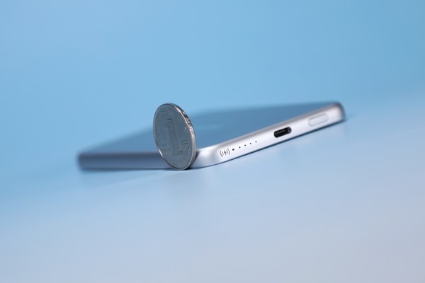 Устройство толщиной всего 6,9 мм и весом 95 грамм практически не утяжеляет смартфон при креплении на магнитах. Корпус выполнен из матового алюминиевого сплава, устойчивого к отпечаткам пальцев. На магнитной стороне также расположена зона NFC, позволяющая при соприкосновении со смартфоном отображать на его экране текущий уровень заряда повербанка, состояние батареи и напряжение.