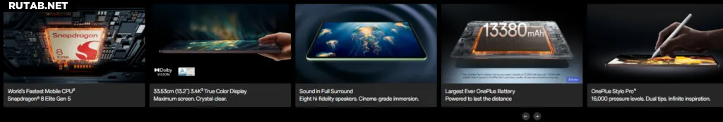 В основе устройства лежит процессор Snapdragon 8 Elite Gen 5, который будет работать в паре с оперативной памятью до 12 ГБ и накопителем до 512 ГБ. Дисплей планшета представляет собой 13,2-дюймовую панель с разрешением 3,4K (3392 x 2400 пикселей) и частотой обновления 144 Гц. Он также поддерживает Dolby Vision, а в режиме высокой яркости его пиковая яркость достигает 1000 нит.