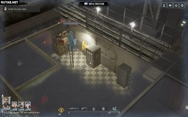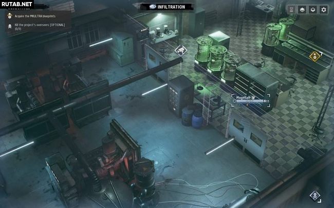 Есть агент перед комнатой (см. скриншот) но он не будет иметь никакого намерения двигаться оттуда на протяжении всей миссии. Избегайте его, выключите лазеры на первом этаже и поднимитесь по лестнице, ведущей в эту комнату. Тогда вам придется саботировать подводную лодку.