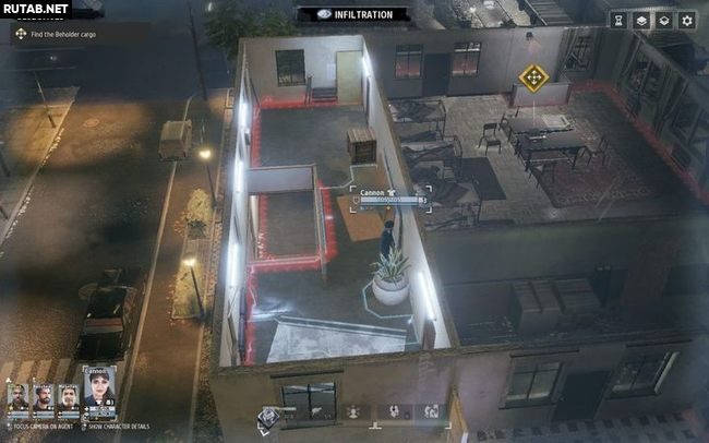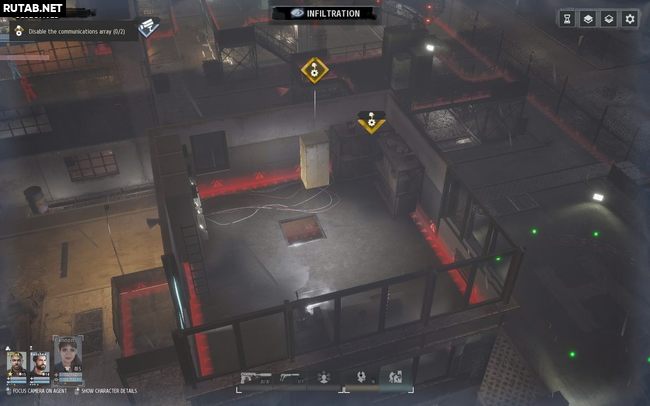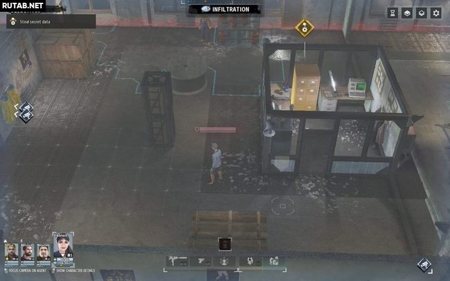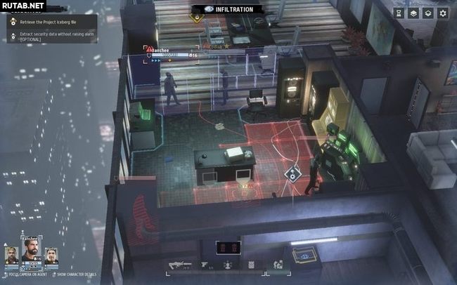 После этого отправьте одного агента осмотреть здание Beholder, затем атакуйте офисное здание в Чикаго (оснастите своих агентов глушителями и дымовыми / флеш-гранатами). Цель миссии состоит в том, чтобы получить портфель о проекте Айсберг. Все офисное здание покрыто лазерами - вы должны отключить их один за другим. Первая консоль, которая выключает лазеры находится в месте, показанном на скриншоте. По пути вы встретите патрульного охранника.