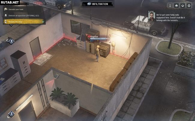 Как только ваше расследование закончится, проведите разведку в Глазго (место, где хранится груз). Вы должны атаковать это место. На этот раз вам понадобится сильная команда, оснащенная дымовыми и осколочными гранатами. Вы также должны помнить о том, чтобы замаскировать одного из ваших агентов (агентов, которые не используют маскировку, следует оставить за пределами зоны ограниченного доступа, возле барьера). Деактивируйте лазеры и доберитесь до дежурного с ключом от комнаты с грузом. На скриншоте ниже показано место, где вы можете отключить лазеры.