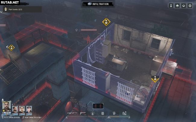 В верхней части, агент будет патрулировать область. После размещения одной или двух бомб сработает сигнализация - именно в этот момент можно убить всех, в том числе и подкрепление (они прибудут довольно быстро). Эвакуируйтесь.