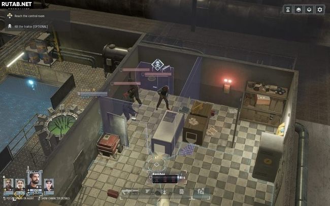 Перед выключением питания, есть запертые двери рядом с целью миссии (см скриншот выше, слева). Установите минимум 3 агента там (у двух из них должна быть световая граната) - очень возможно, что при выключенном питании сработает сигнализация (хотя и не всегда). Теперь можно отключить питание и ждать развития ситуации. С закрытой дверью и агентами, установленными на позициях, появится дополнительная цель: убить предателя-агента в сопровождении двух довольно сильных врагов. Вы можете выполнить это двумя способами (сохраните игру до этого): если сигнализация включена, бросьте им две гранаты. Если нет, подумайте о том, чтобы войти с глушителями - может случиться так, что вы не убьете всех. В зависимости от того, как они расположены, выполните маневр, чтобы они не заметили вас.