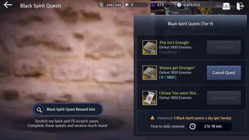 Каждый день Черный Дух предлагает 3 квеста, включающие в себя уничтожение монстров. По мере увеличения уровня Черного Духа, сложность и награда за квесты возрастают.