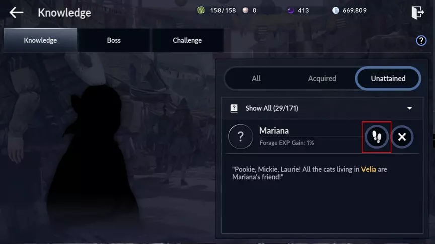 Для получения знаний вам нужно будет говорить с персонажами. Список необходимых для диалога персонажей будет находится в меню.