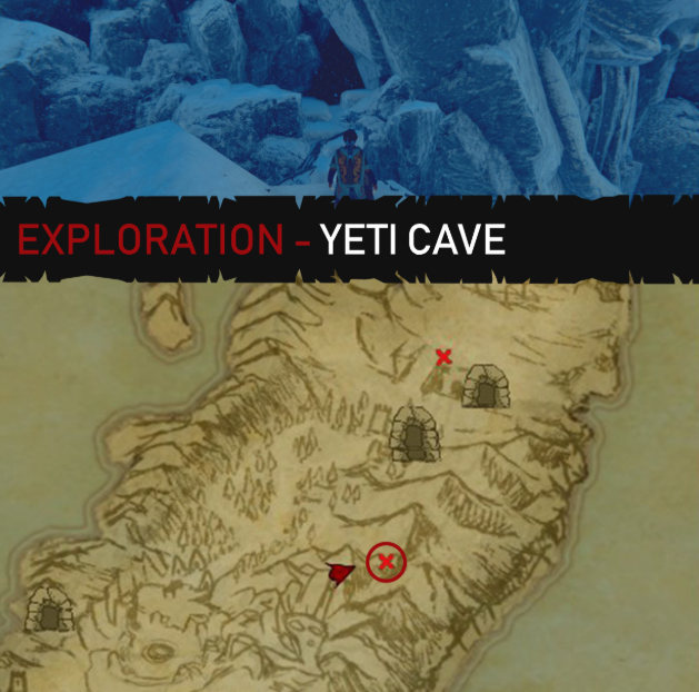 Пещера Йети расположена к югу от колосса Йети (босса в игре, гайд по ним здесь), вдоль самой восточной стороны острова. Пещера находится высоко на ледяной горе, по которой вы не сможете подняться самостоятельно, поэтому для начала вам нужно подняться на каменную гору напротив нее, а оттуда по деревянным платформам, используя свою Парусную Ткань (он позволяет летать по потокам ветра). Внутри пещеры вы можете использовать Крюк, чтобы путешествовать по каменным сооружениям. На другой стороне пещеры вы сможете найти каменный череп в форме йети.