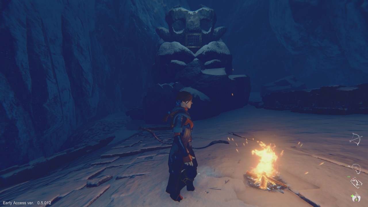 Используйте кусок дерева, чтобы создать костёр на земле, затем взяв в руки лук, подожгите стрелы. Стреляйте в глазницы статуи, чтобы они загорелись. Как только вы это сделаете, металлические прутья, мешающие вам получить доступ к сундуку с сокровищами, будут опущены, и вы сможете разграбить сундук.