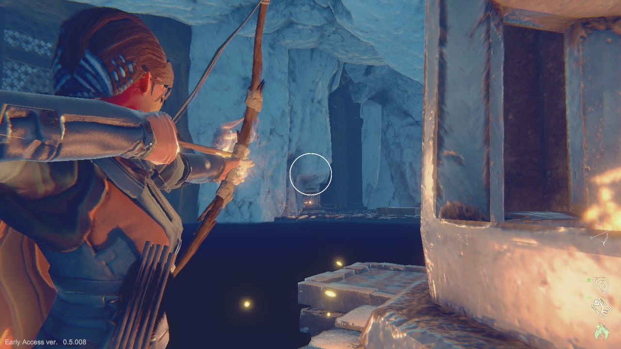 В центре области вы сможете с помощью куска дерева создать костёр. Как создадите, возьмите в руки лук и зажгите стрелу, чтобы ими зажигать фонари. Каждые фонари вы можете использовать для поджига стрел и зажигания фонарей. Суть вы поняли. Как только все фонари зажгутся, клетка с сокровищами будет разблокирована. Но в этот момент начнёт подниматься вода. Так что не теряйте время и бегите к сундуку, а после покиньте локацию.