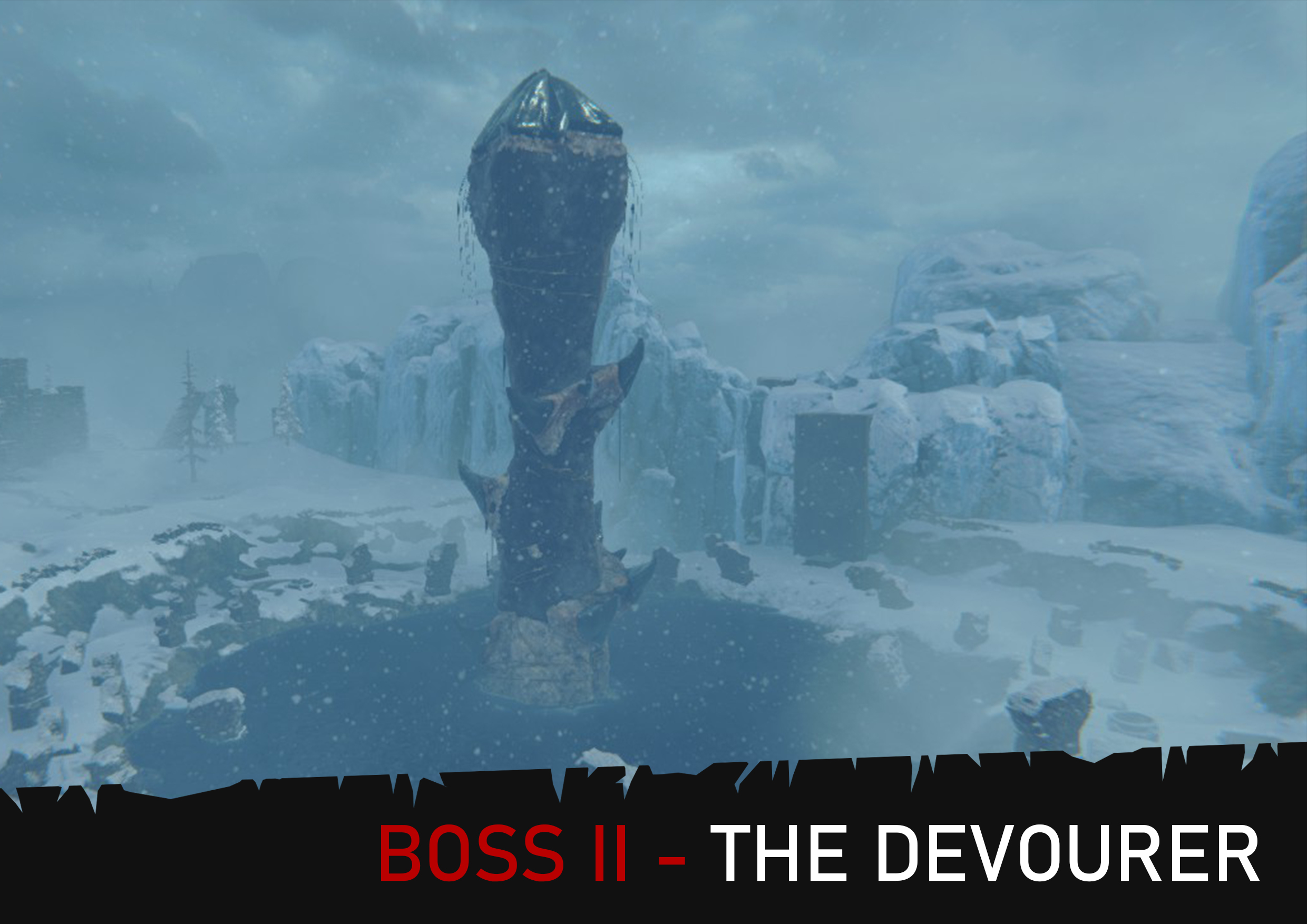 Переодически Пожиратель начнёт крутить головой и извергать гнилостный черный туман (как на скриншоте вверху), из которого будут появлятся небольшие шары, направляющихся к вам. Они наносят физический урон.