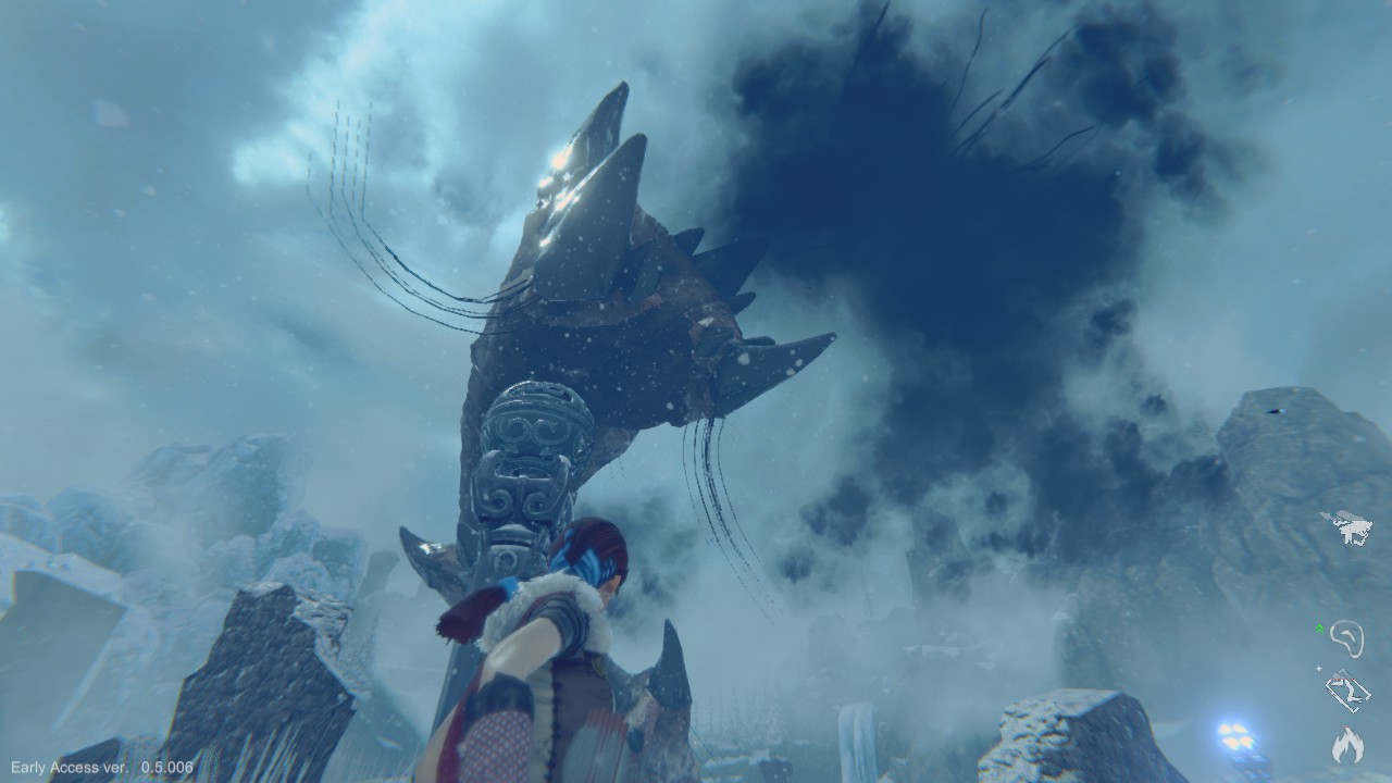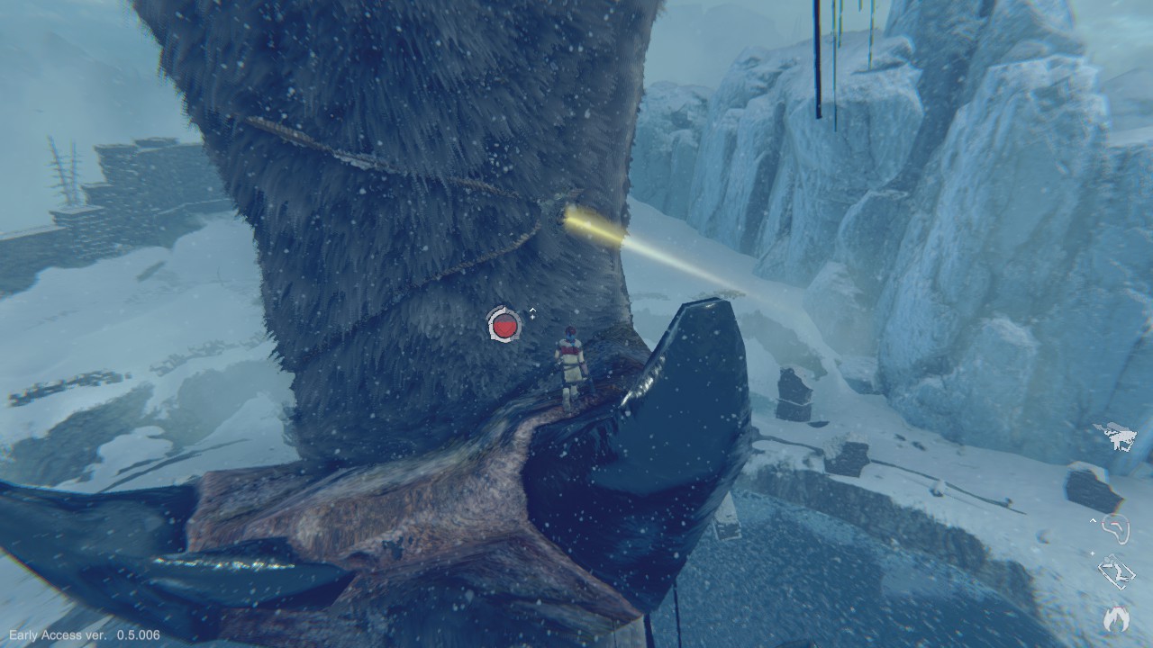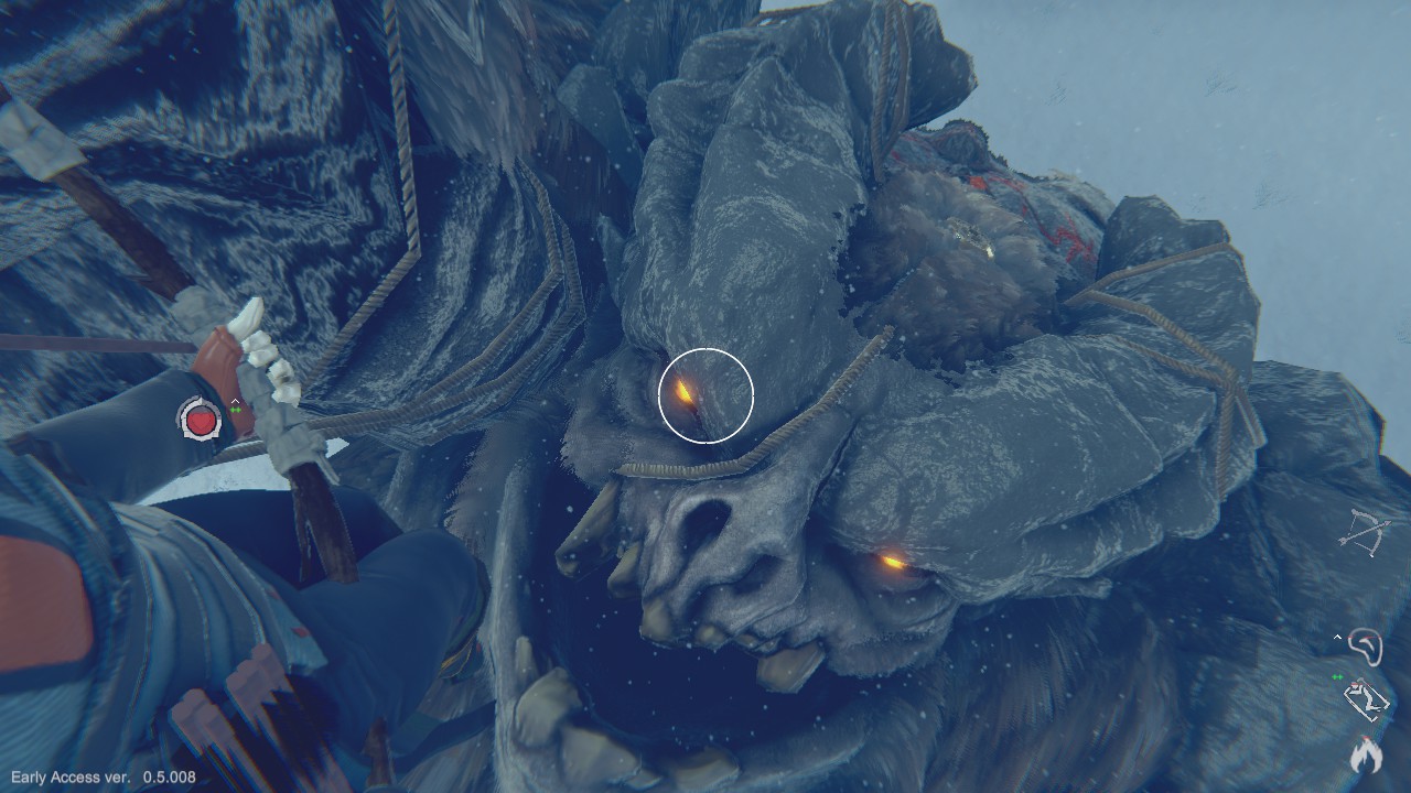 Самый безопасный и надежный способ попасть на босса — подвести его к глубокому снегу. Из-за веса колосса, при атаке ногой, его конечность провалится под снег. Это будет вашим шансом забраться на него и атаковать руку. Переодически Йети сможет хватать вас высоко над собой в попытке проглотить. Берите в руки лук, цельтесь в глаза и стреляйте. Если вы попадёте несколько раз в его глаза, колосс упадёт.