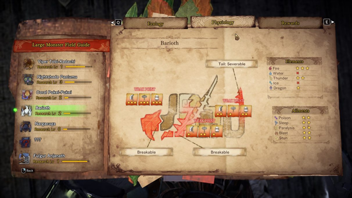 Фактически, вам нужно сломать его передние лапы и отрубить хвост. Такой урон значительно замедлит Бариота, сделая его уязвимым к прочим вашим ударам. Цвет глаз Бариота меняется от синего до красного при ярости. В этом состоянии он будет атаковать более беспорядочно. При нанесении критического урона, Бариот чаще будет переходить в состояние ярости.