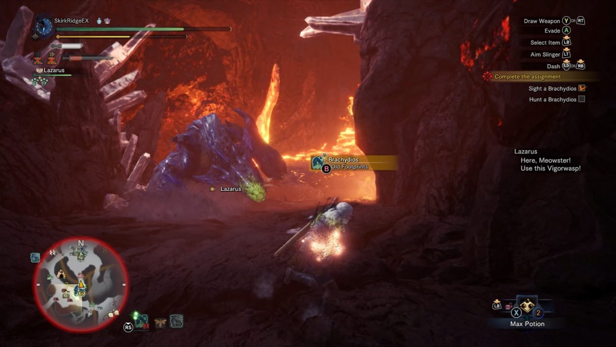 Во время сражения обращайте внимание на отложения слизи, которые он может оставить повсюду. Они не только очень липкие, затрудняют ваше движение, но также взрываются через короткое время и наносят «взрывной удар». По сути, это более разрушительная версия взрывной волны. Урон колоссальный. Также слизь есть и на лапах монстра. Если вы на расстоянии от монстра, он побежит на вас, размахивая лапами. Конец атаки приходится хвостом по тому месту, где вы стоите.